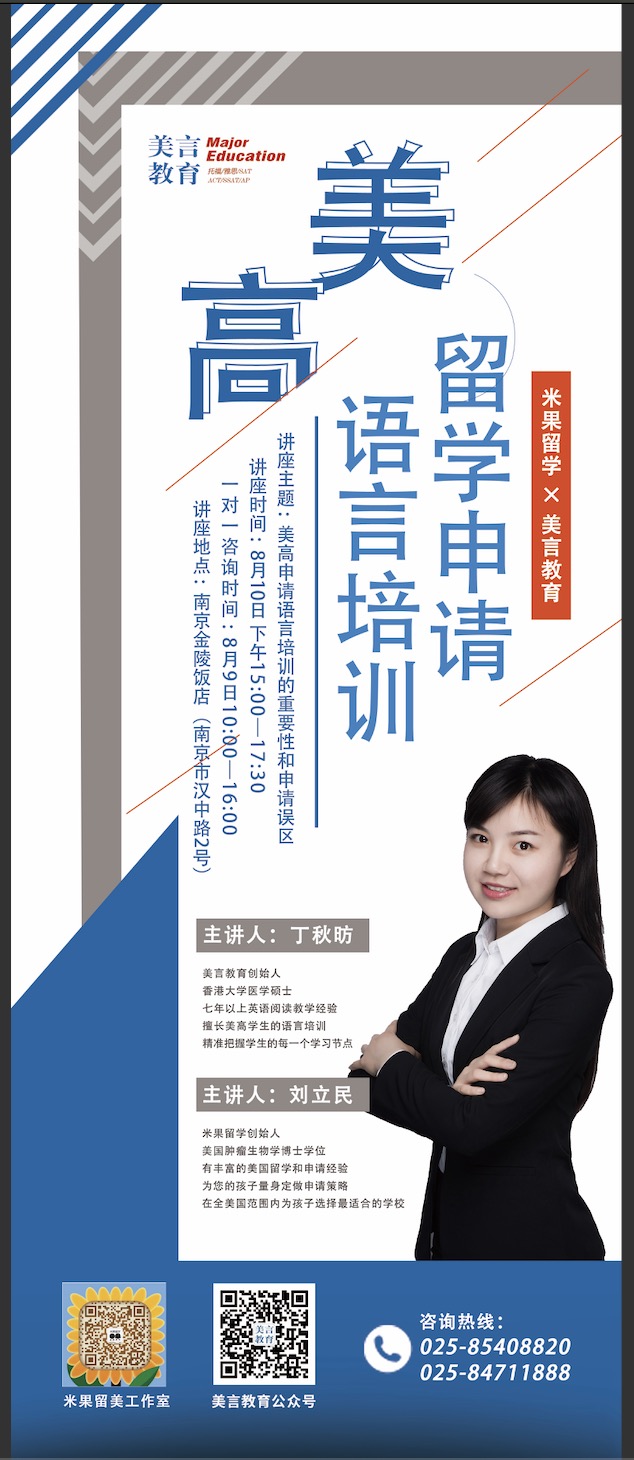 摘要: 美言教育,专注初、高中留学语言培训,在师资力量、教学内容、课后监督等方面优势互补,根据中学生年龄、心里特点,形成核心课程-----桥梁课程-----托管练习层层嵌套的渗透型教学模式。以改变学员学习习惯,促进学员进步成长为宗旨的出国留学语言考试培训机构,主营业务有TOEFL、ACT、SAT、TOEFL junior、SSAT。